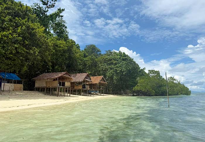 Dugong Homestay is located at Raspapir, an east-facing beach on a peninsula on the central north coast of Batanta. The homestay is named for the dugongs that sometimes graze the nearby seagrass meadows during high tides.