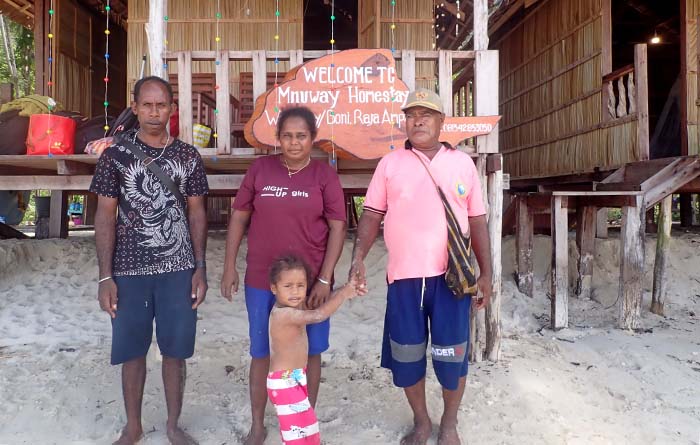 The homestay also offers various tour packages, including marine views, tracking, bird watching, surfing trips, cultural visits, and excursions to distant sites like Wayag.