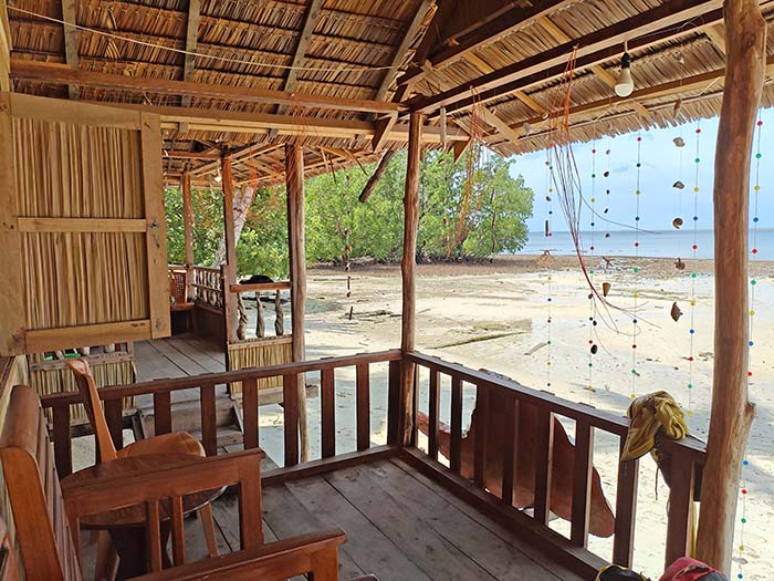 Meals are served in Mnuway Homestay’s sand-floored dining room. Tea and coffee making supplies and drinking water are always freely available to guests there.