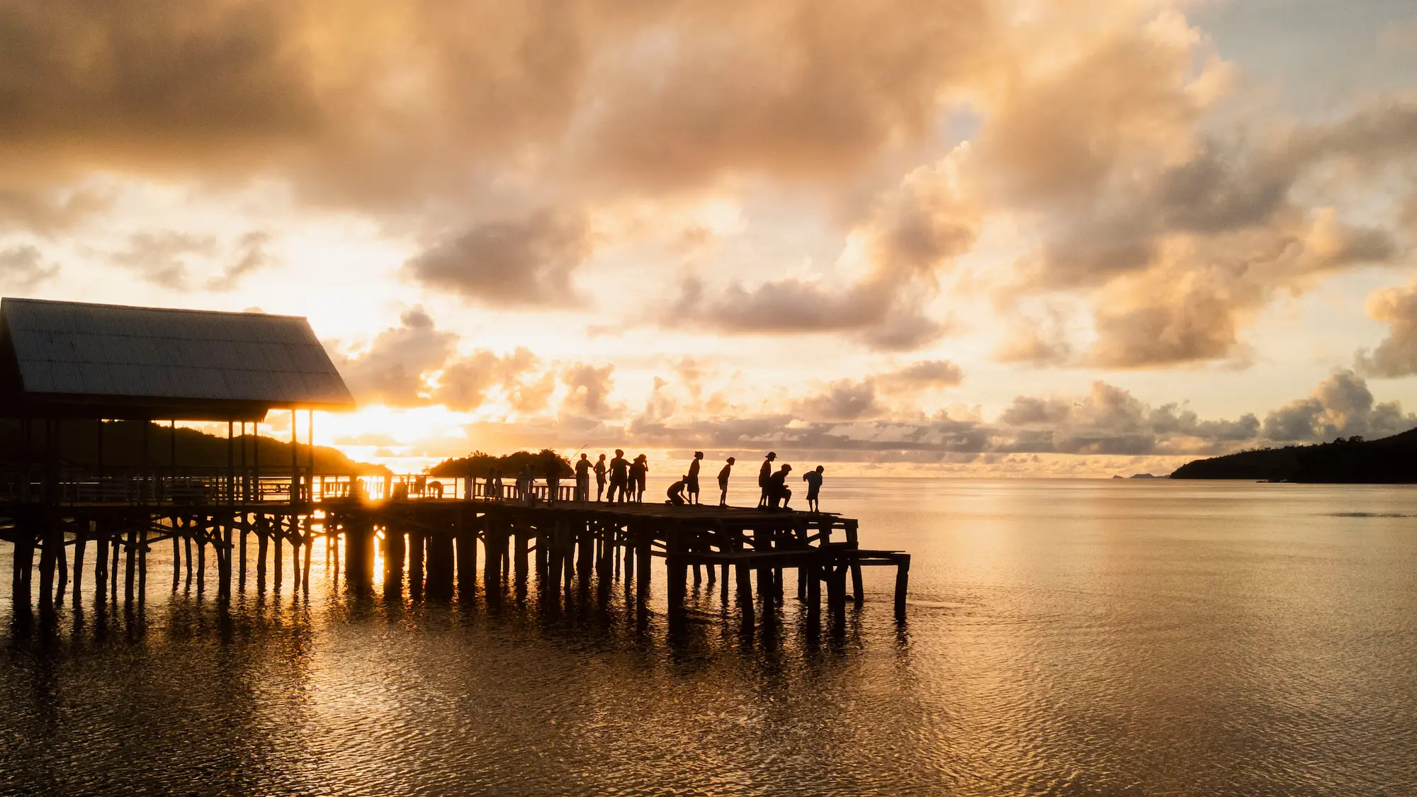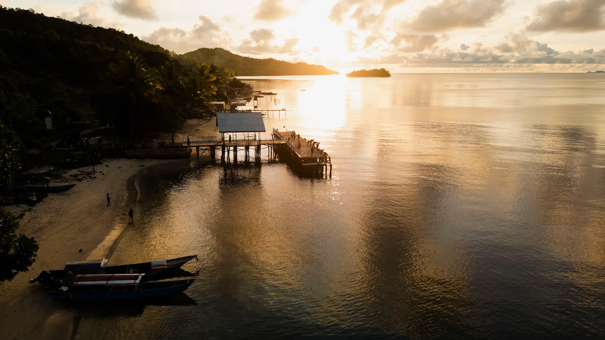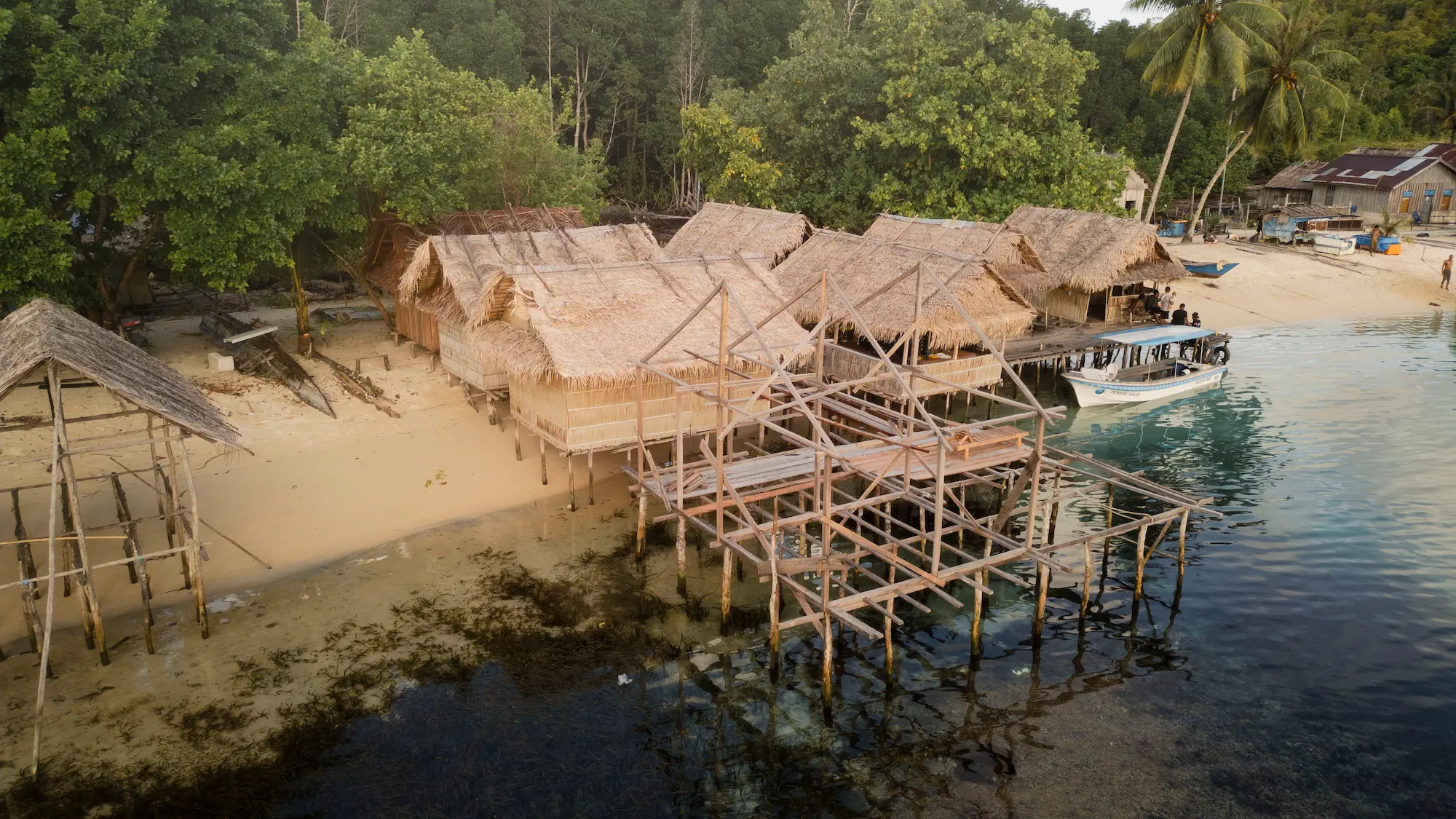 It offers accommodation and nature/marine tourism packages, featuring traditional local architecture with a jetty, exclusive authentic stays, snorkeling spots, and sunset views.